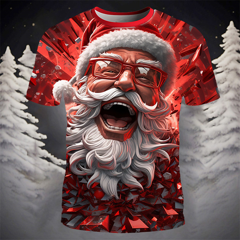 Christmas Men's Santa Claus 3D T-shirts Graphic Santa Claus Daily Designer Retro Vintage 3D Print Tee Sports Outdoor Holiday Going out Deep Purple Yellow Light Green Short Sleeve Crew Neck Spring
