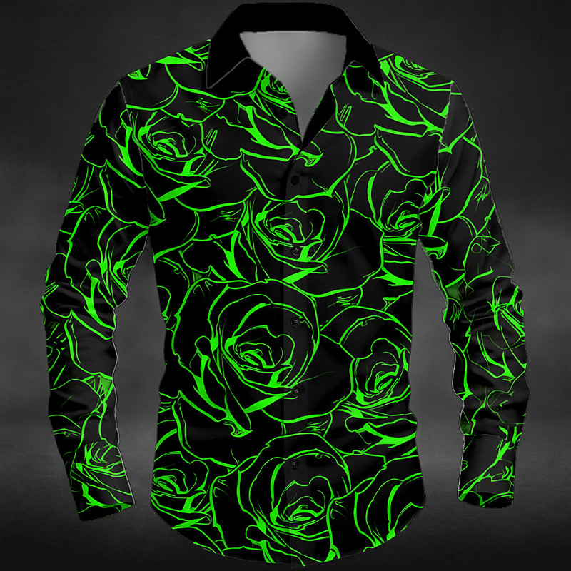 Men's Floral Print Day of the Dead Rose Shirt Button Up Shirt Long Sleeve Dark Gothic Style Outdoor Holiday Spring Fall Turndown 3D Print Collared Shirts Black Green Black / Purple Black-Red