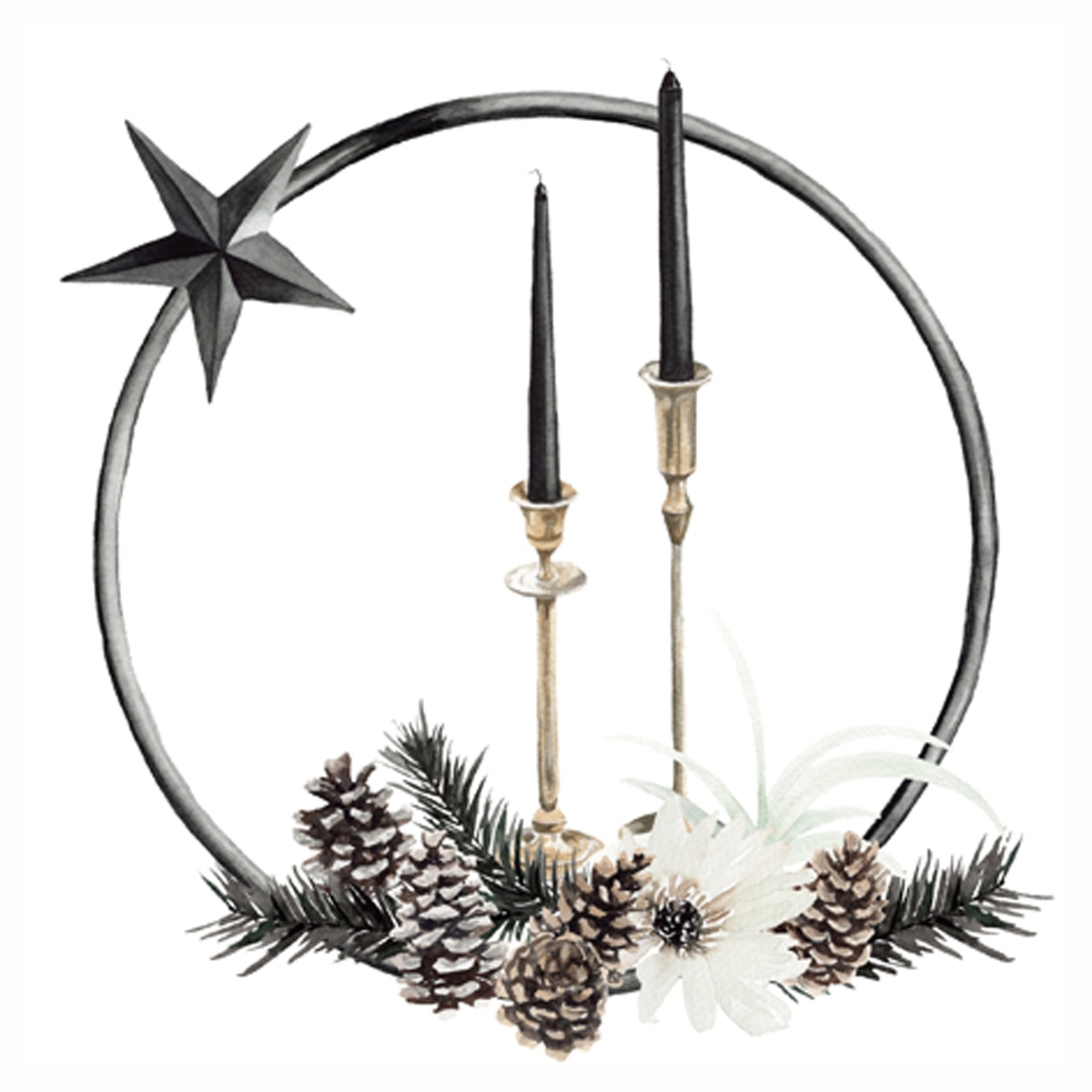 ti-flair 20 Servietten Papier 33x33cm 3-lagig - Servietten mit schwarzen Kerzen & Kranz - festliche Tischdeko in Schwarz Papierservietten Weihnachtsdeko