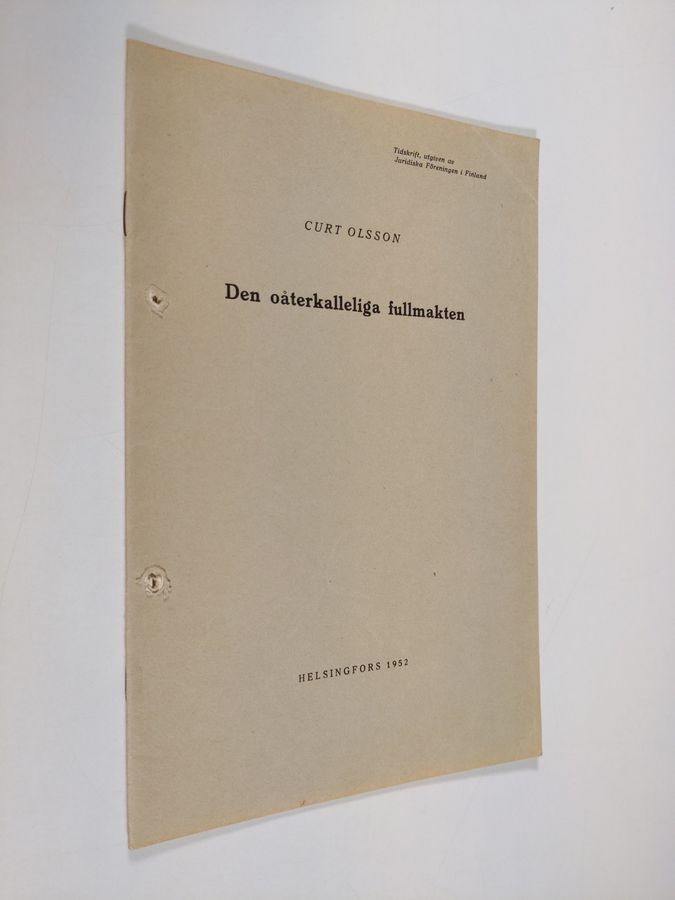 Curt Olsson : Den oåterkalleliga fullmakten (särtryck ur "Tidskrift, utgiven av Juridisk Föreningen i Finland" 1952. Häft 4-5)