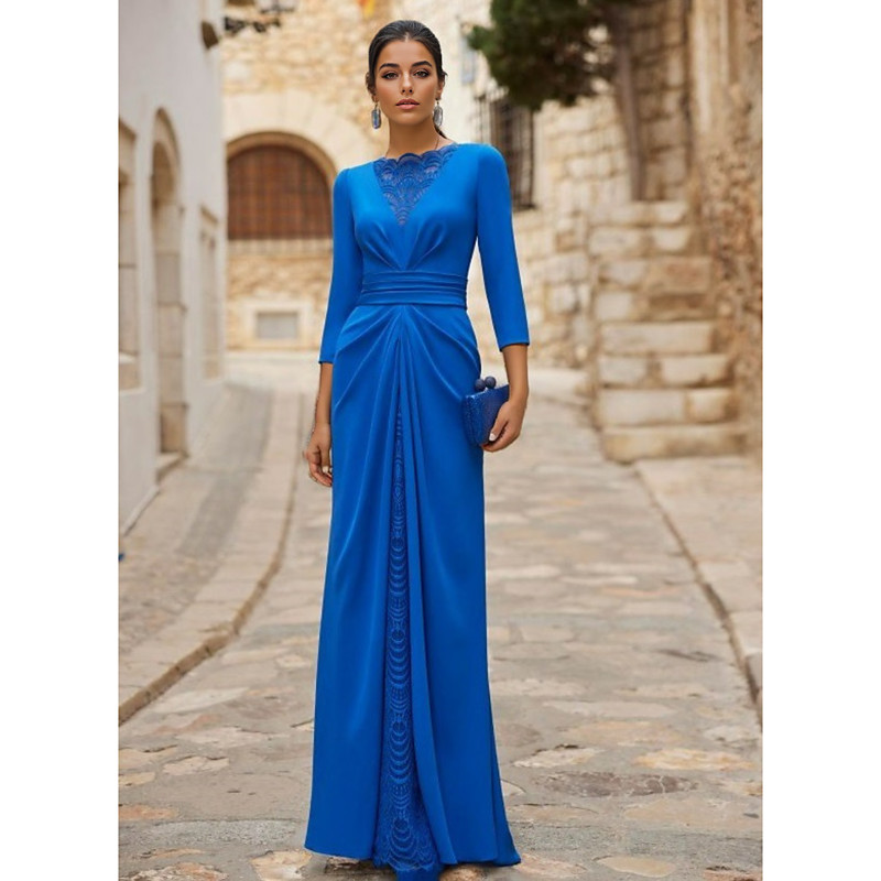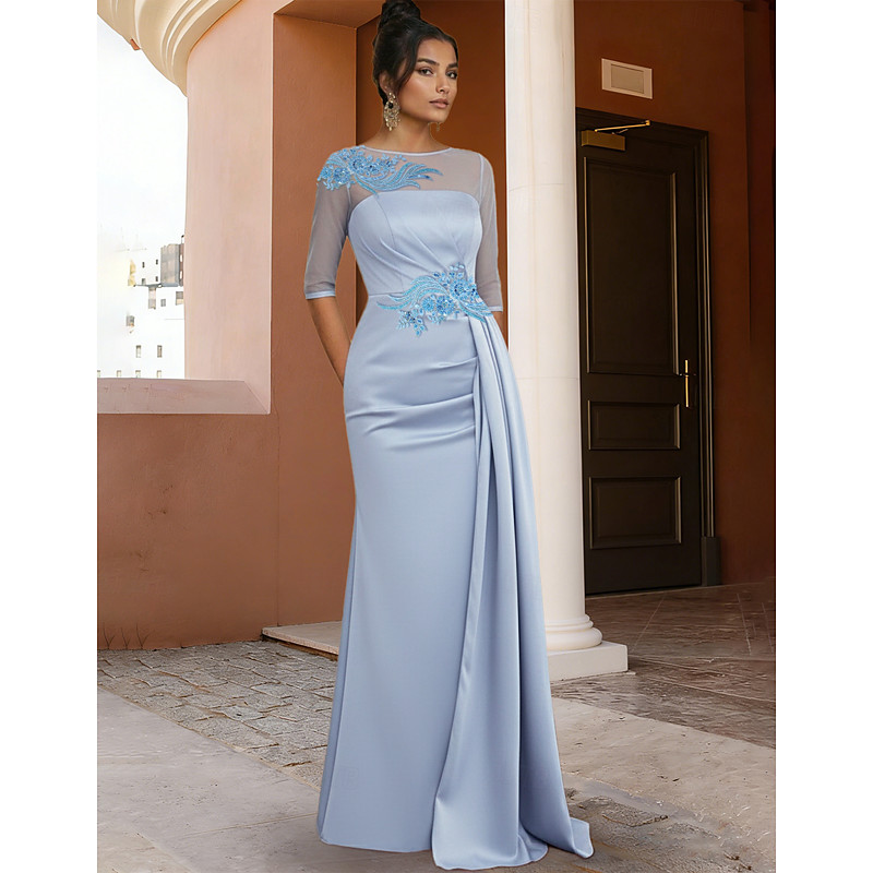 Sheath / Column Floor Length Prom Dresses Evening Gown Ball Gown Formal Dress Elegant Half Sleeve Jewel Neck Wedding Guest Formal Evening Fall Wedding Reception with Pleats