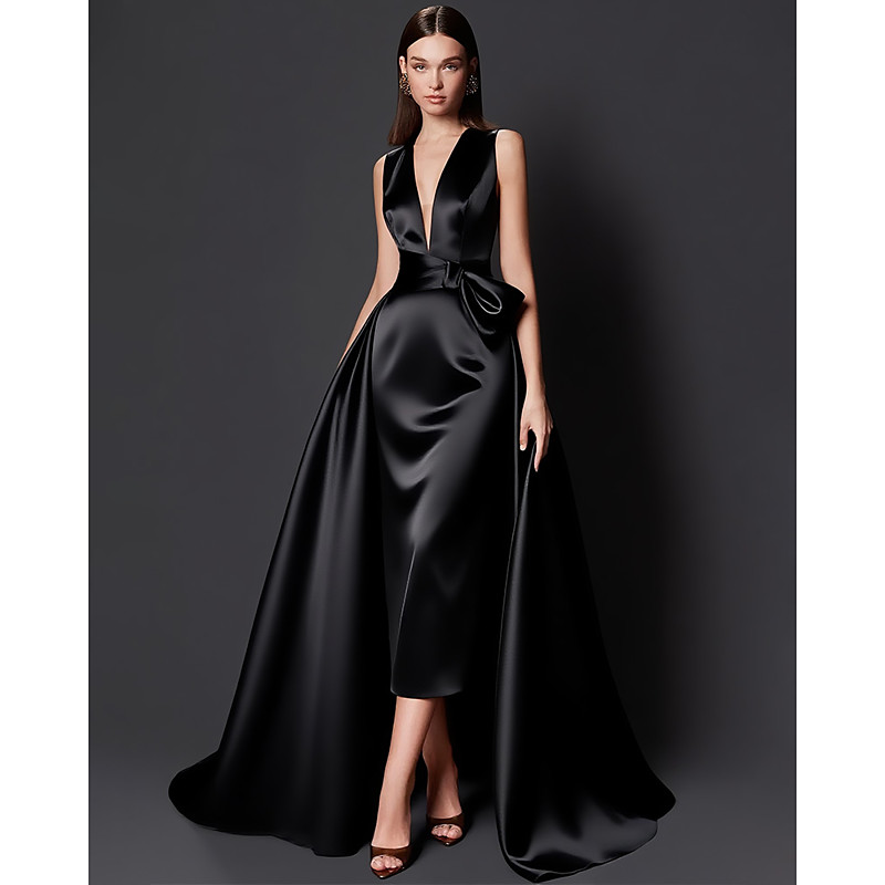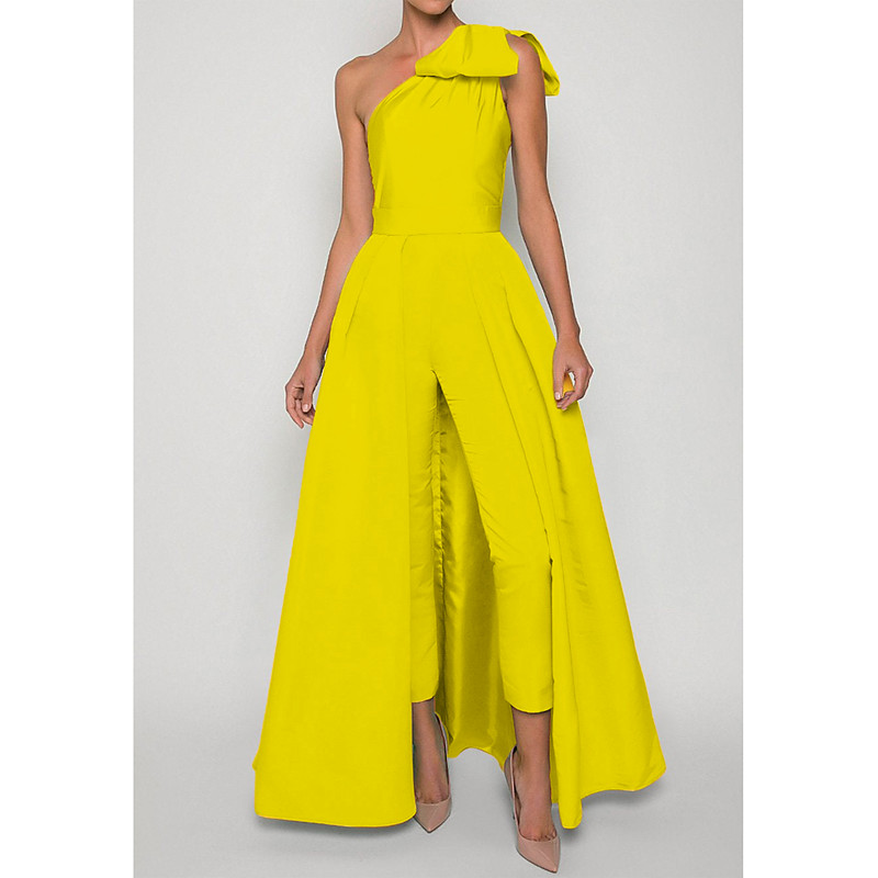 Jumpsuits Floor Length Evening Gown Ball Gown with Overskirt Formal Dress Elegant Infinity Sleeveless One Shoulder Formal Wedding Guest Convertible Stretch Fabric with Bow(s) Pleats Overskirt