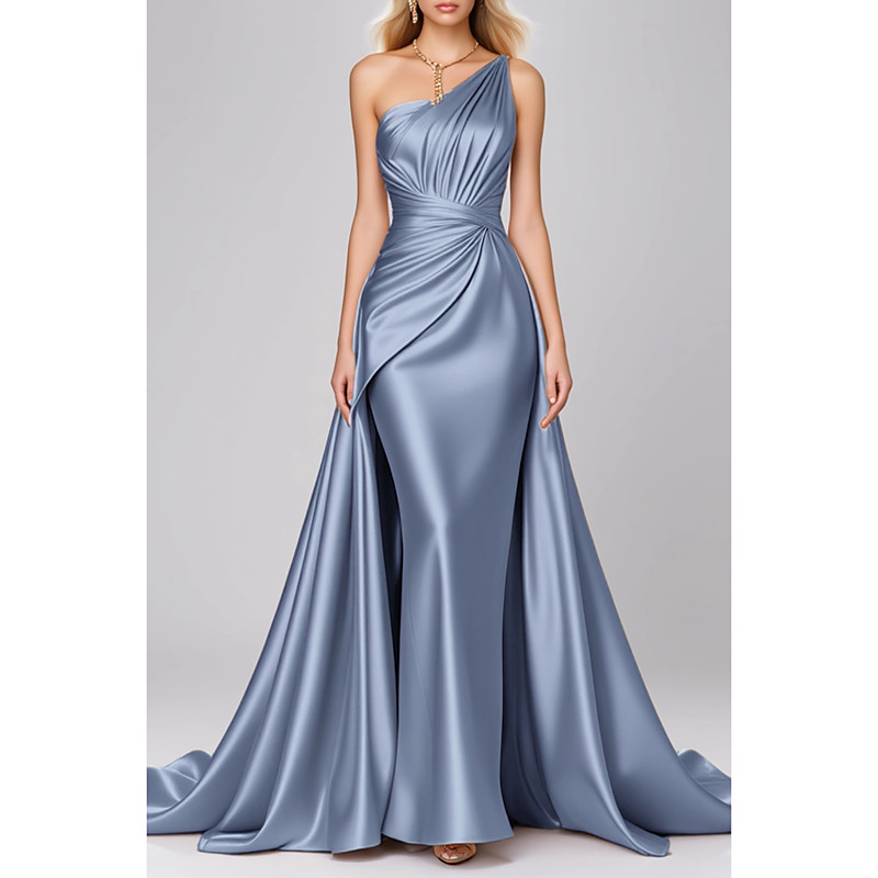 Sheath Column Sweep Brush Train Prom Dresses Evening Gown Ball Gown Formal Dress Elegant Sleeveless One Shoulder Formal Stretch Chiffon with Pleats Ruched