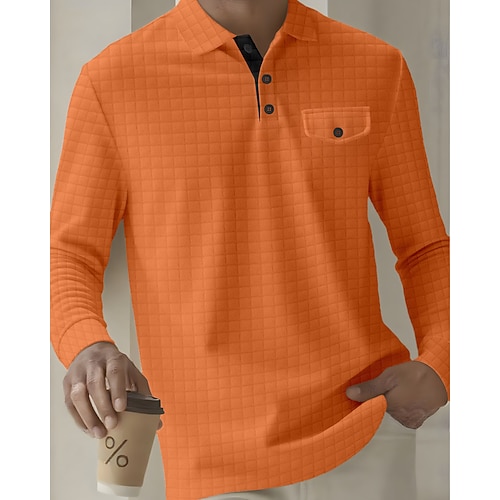 Per uomo Maglia da golf Polo da Golf Lavoro Casuale Bavero Manica Lunga Essenziale Moderno Semplice Jacquard Bottoni Primavera Autunno Vestibilità regolare Nero Bianco Blu marino Arancione Grigio