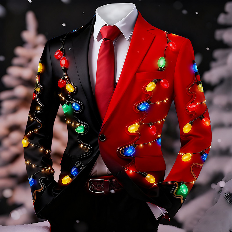 Natale Per uomo Albero di Natale Giacca blazer Confortevole Artistico Casual Abbigliamento da sera Quotidiano Festival Bottoni Stampato Primavera Autunno Inverno Dentellato Manica Lunga Rosso 1 Rosso
