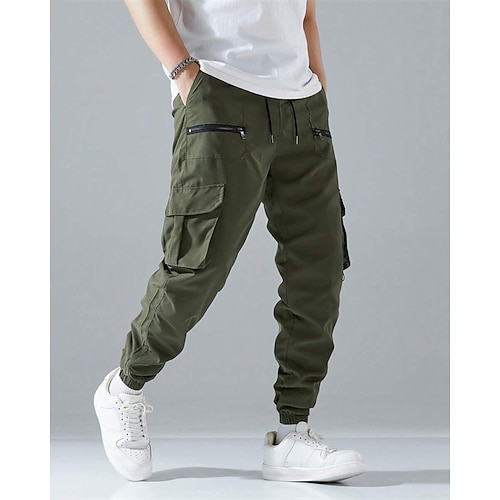 Herren Cargohose Cargohosen Jogginghose Jogger Hose Hosen Kordelzug Elastische Taille Multi Pocket Glatt tragbar Outdoor Täglich Campen und Wandern Modisch Klassisch Schwarz Armeegrün