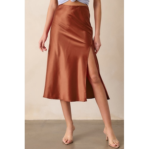Damen Satinröcke Elegant Mode Lässig Midi Hohe Taille Röcke Einfach Mikroelastisch Täglich Straße Schwarz Champagner Braun Armeegrün Sommer Satin Polyester