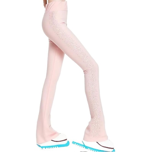 pantaloni da pattinaggio artistico da donna e da ragazza, pantaloni da pattinaggio sul ghiaccio, rosa, elasticizzati, abbigliamento da pattinaggio per gare di allenamento, termici, caldi, con