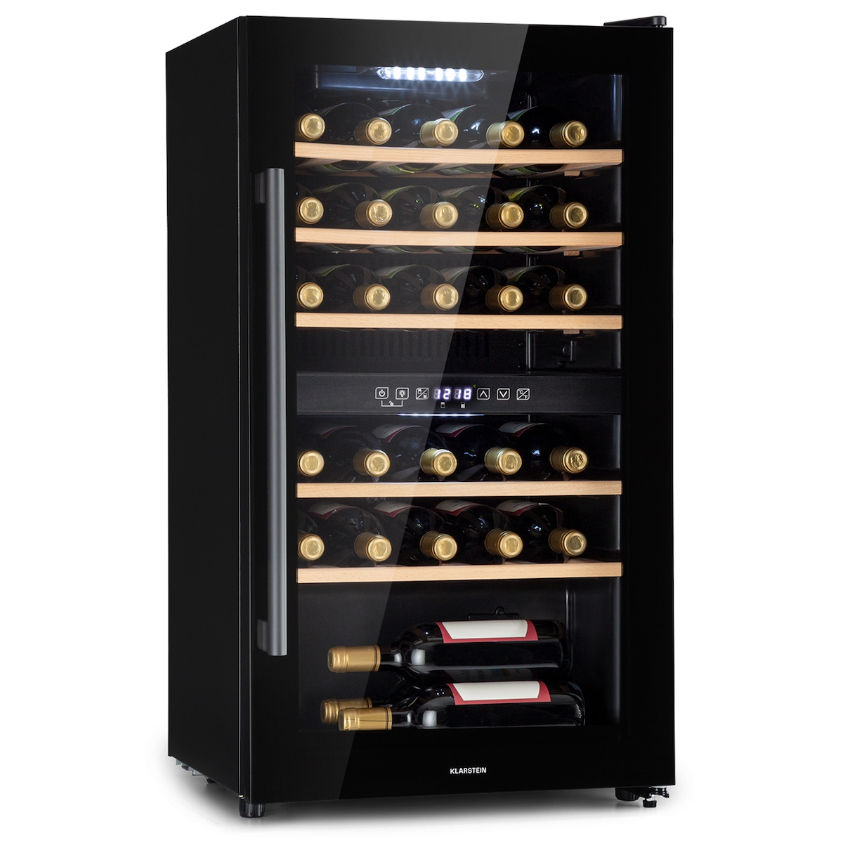 Klarstein Barossa 29 Duo Weinkühlschrank 29 Fl 80 Ltr 2 Zonen Drucktasten Schwarz