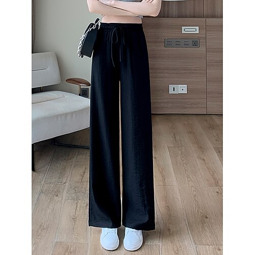 Per donna Gamba larga Pantaloni in cotone e lino Pantaloni Moda Lunghezza intera Semplice Coulisse Tasche Laterali Traspirabilità Confortevole Inelastico Casual Quotidiano Nero Bianco Beige Primavera