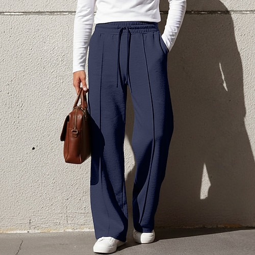 Per donna Gamba larga Pantaloni Eleganti Streetwear Casual Lunghezza intera Naturale Semplice Elastico in vita Confortevole All'aperto Vacanza Ferie Marrone rossastro Rosso violaceo Cenere Grigio