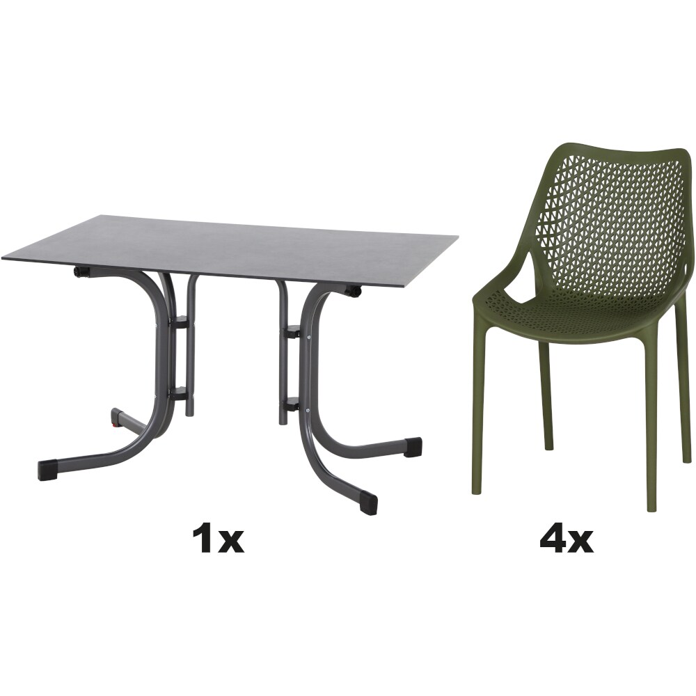 SIENA GARDEN Urban Lights Set 5teilig District gastrotauglich olive mit Tisch Sola 120x80