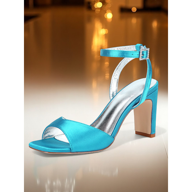 Women's Green Satin Ankle-Strap High Heels - Elegant Open-Toe Block Heel Party Sandals for Weddings, Evenings Special Events