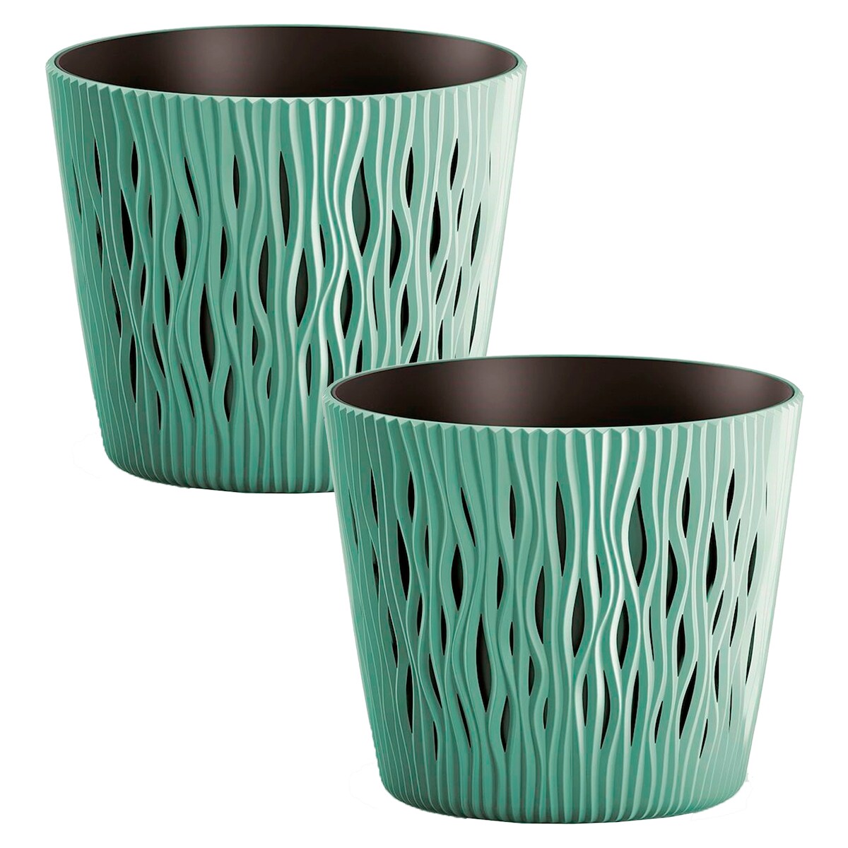 WellHome - Set mit 2 Pflanztöpfen 1,7L Sandy Round Ø15,8 cm/Stück in Salbeigrün