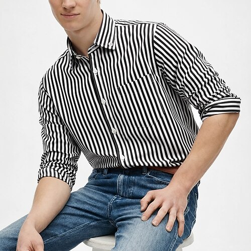 Per uomo Camicia Camicia elegante Camicia button-down Strisce verticali Casuale Quotidiano Blu Blu chiaro Nero Bianco Manica Lunga Collo ripiegato Tutte le stagioni Abbigliamento Patchwork
