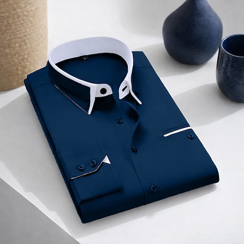 Per uomo Camicia Camicia elegante Camicia button-down Semplice Quotidiano Affari Blu chiaro Bianco Rosa Blu marino Manica Lunga Collo ripiegato Tutte le stagioni Abbigliamento Patchwork