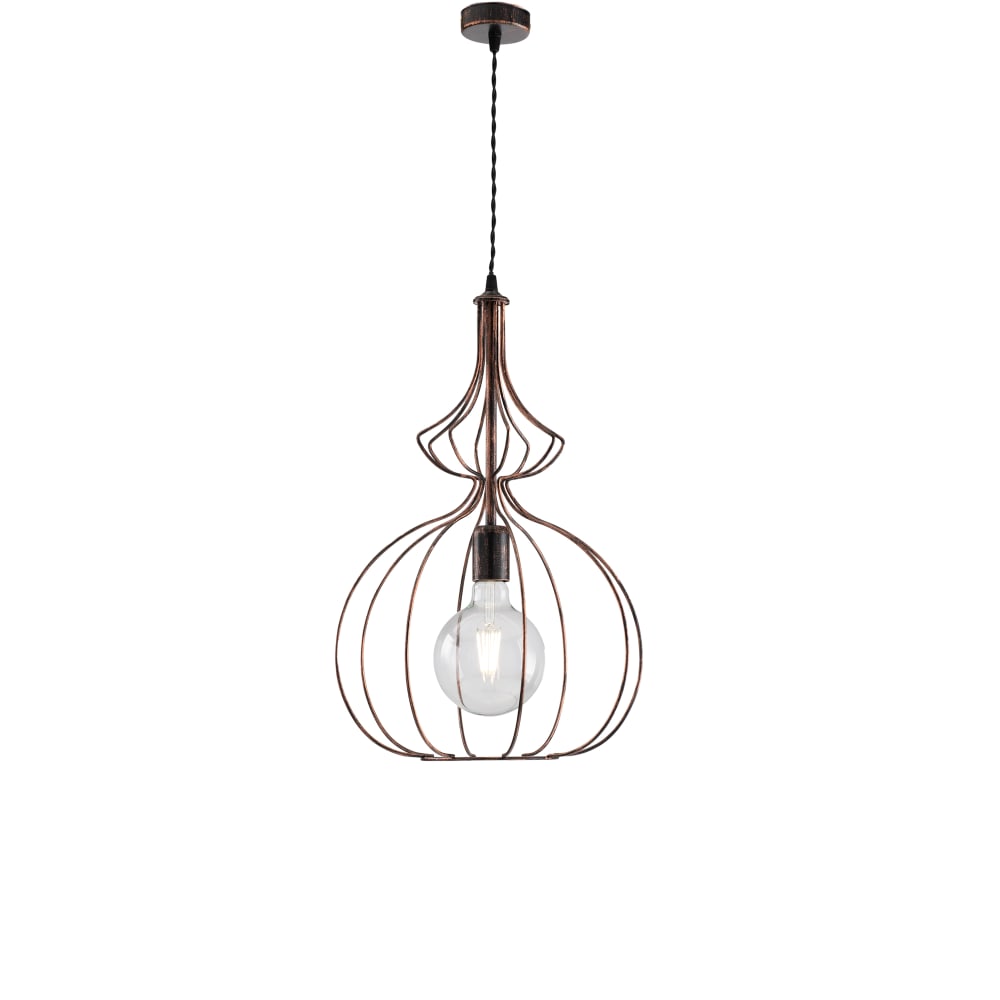 Sospensione industrial 1 luce gabbia ferro laccato nero e rame
