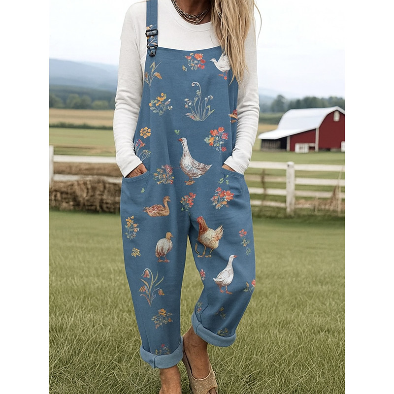 Women's Wide Leg Active Vacation Vintage Full Length Mid Waist Animal Pocket Inelastic Vacation Street Daily Blue Green Summer Spring Loose Fit