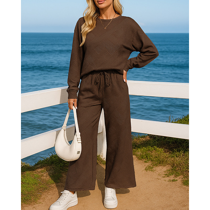 Women's Fashion Streetwear Daily Shirt Linen-Inspired Sets Two Piece Sets Wide Leg Pants 3/4 Length Sleeve Crew Neck Plain Casual Daily Black White Army Green Spring Fall Regular Fit