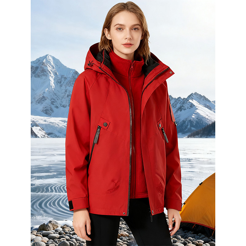 Women's 3-in-1WaterproofDownJacket With Hood Waterproof Comfortable Zipper Pocket Casual Plain Vacation Street Daily Wear Going out Zipper Regular Hooded Regular Fit Long Sleeve Outerwear Blue