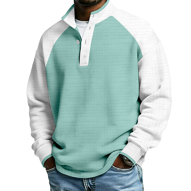 Men's Color Block Color Gradient Waffle Sweatshirt Fashion Daily Casual High Neck Home Outdoor Streetwear Office Blue Purple Green Dark Blue Buttons Fall Winter Designer S M L XL XXL XXXL