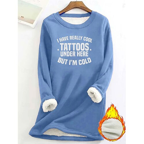 Per donna Felpa Pullover Grafico Lettera Caldo Casual Morbido Manica Lunga Girocollo Top lunghi Streetwear Casuale Rosa chiaro Nero Rosa scuro Blu Primavera Autunno Inverno