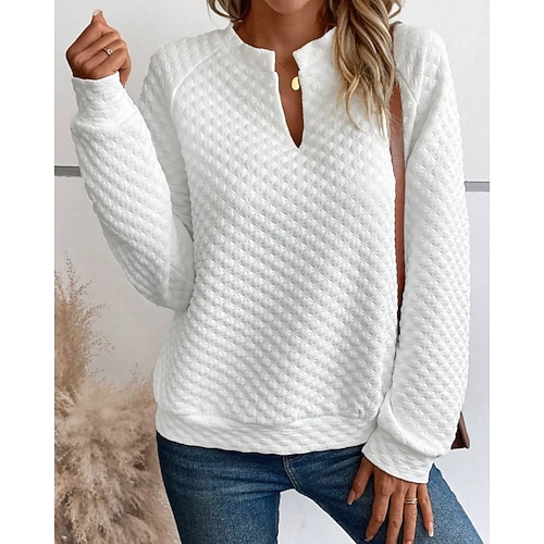 Per donna Felpa Informale Tinta unica A V A V Manica lunga Top regolari Maglia Esterno Giornaliero Fine settimana Nero Rosso Autunno Inverno