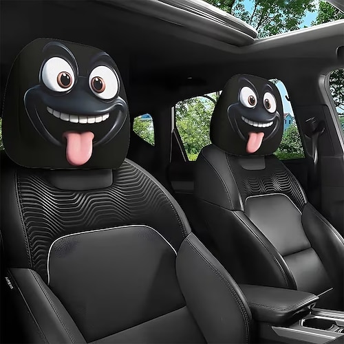Copri poggiatesta per auto con stampa di 2 cartoni animati con grandi occhi, decorazione per interni, vestibilità universale, lavabile, facile da installare, adatto per lunghi viaggi o viaggi su