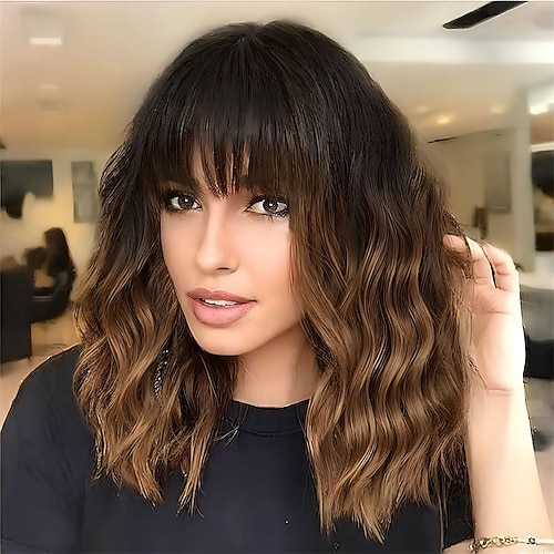 parrucche ondulate lunghe castane ombre capelli con frangia ramato nero biondo onda bianca parrucche attaccatura dei capelli naturale per le donne parrucche barbiecore