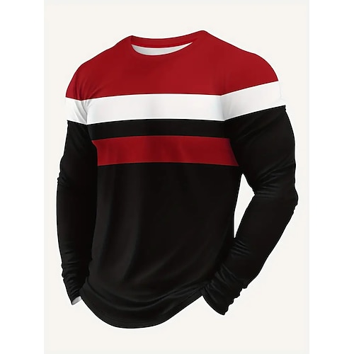 Per uomo Maglietta Camicia a Maniche Lunghe Manica Lunga Girocollo Primavera Autunno A righe Moda Designer Blocco di colore Vacanza Streetwear Uscire GrigioBianco Rosso nero Maglietta Top per