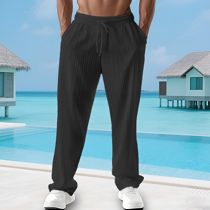 Men's Summer Pants Beach Pants Casual Pants Pocket Elastic Waist Drawstring Plain Comfort Breathable Vacation Daily Holiday Hawaiian Boho Black White