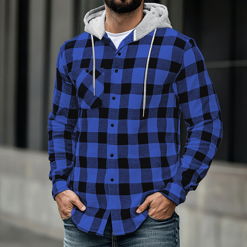 Men's Casual Shirt Flannel Shirt Thick Shirt Flannel Jacket Plaid Sports Outdoor Street Black Red Blue Purple Long Sleeve Hooded Winter Spring Fall Clothing Apparel Check Pattern