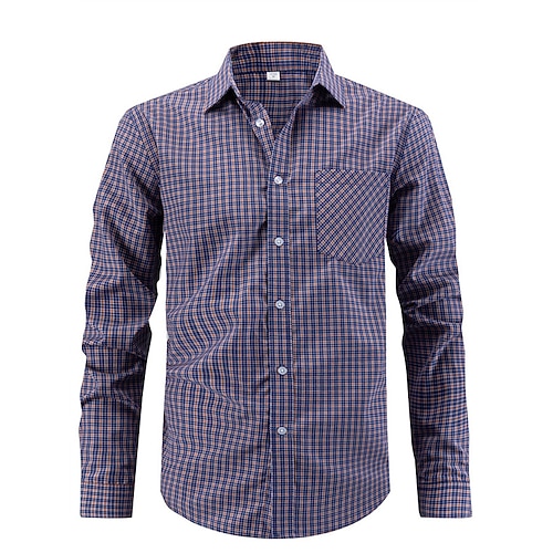 Men's Shirt Casual Shirt Plaid Shirt Button Up Shirt Plaid / Check Outdoor Daily Wear Navy Blue Royal Blue Blue Sky Blue Long Sleeve Lapel Fall Winter Clothing Apparel Front Pocket