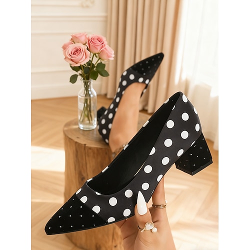 décolleté da donna a pois bianchi e neri con punta affilata e tacco a blocco – stile vintage anni '50, perfette per l'ufficio, le uscite quotidiane e gli eventi dal giorno alla sera