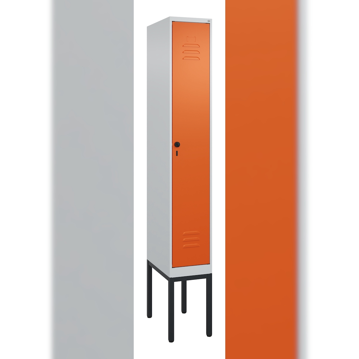 C+P Spind Classic PLUS, Gestell, 1 Abteil, HxBxT 212x30x50cm, Sicherheitsdrehriegel, Hellgrau/Reinorange von PROREGAL