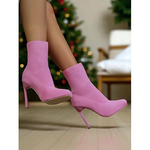 stivali da donna con tacco alto in Flyknit bianco stile calzino: stile moderno ed elegante, perfetti per feste, eventi serali e moda invernale