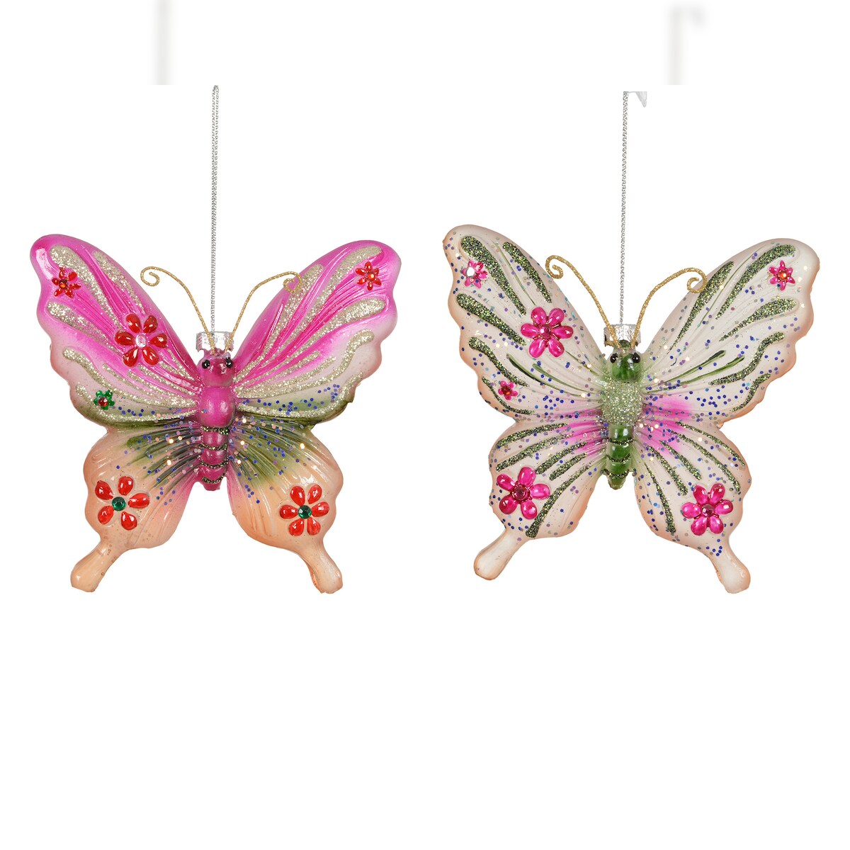 1 Christbaumschmuck Glas 11cm Schmetterling Figur zum Aufhängen - Weihnachtsbaum Anhänger Weihnachten Weihnachtsbaumschmuck Butterfly Floral Bunt