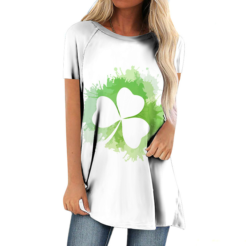 St. Patrick's Day Women's Lucky Shamrock Active Sportswear Long Sleeve Round Neck Regular Tops Casual Sports Print Grass Green Olive Green Light Green Dark Green Green Fall Winter