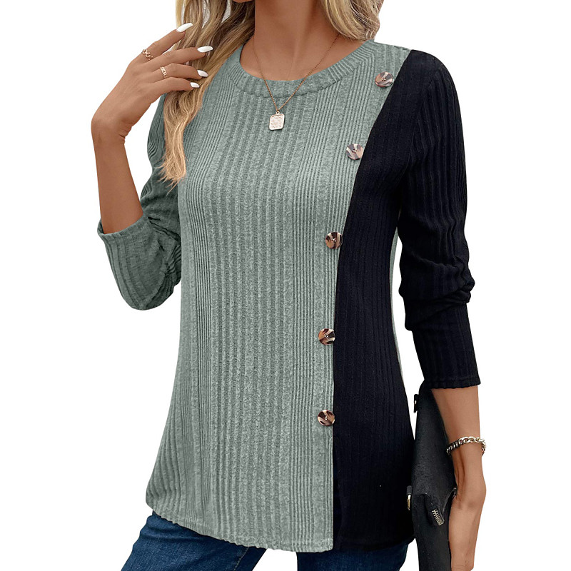 Women's Blouse Color Block Stylish Casual Long Sleeve Crew Neck Regular Tops Daily Ruched Buttons Light Green Wine Army Green Brown Khaki Spring Fall Winter