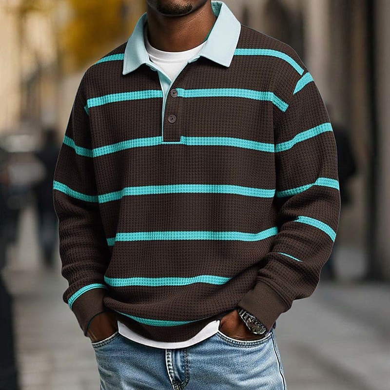 Men's Horizontal Stripes Waffle Polo Shirts Rugby Polo Textured Long Sleeve Polo Shirts Lapel Sportswear Casual School Athleisure Daily Wear 3D Print Spring Fall Winter Blue Yellow Purple