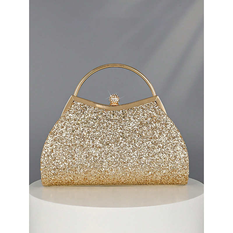 Women's Glitter Evening Clutch Bag – Sparkly Gold Handbag with Chain Strap, Elegant Party Purse for Weddings, Proms and Cocktail Events