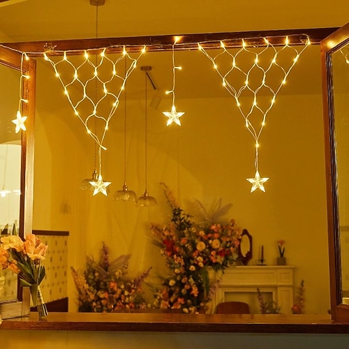 Luci natalizie a forma di rete da pesca triangolare, luci fatate da 4 m, 196 LED, lanterne impermeabili per esterni, Natale, Capodanno, festa di nozze, casa, camera da letto, balcone, giardino,