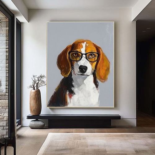 Beagle dipinto a mano in stile oro, cane astratto, dipinto a olio su tela, decorazione murale per camera da letto, regalo per gli amanti degli animali, pittura di animali, pittura a olio per animali