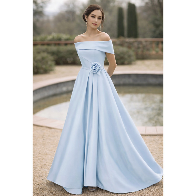 A-Line Floor Length Evening Gown Ball Gown Formal Dress Elegant Silky Sleeveless Off Shoulder Wedding Formal Satin with Embroidered Flower