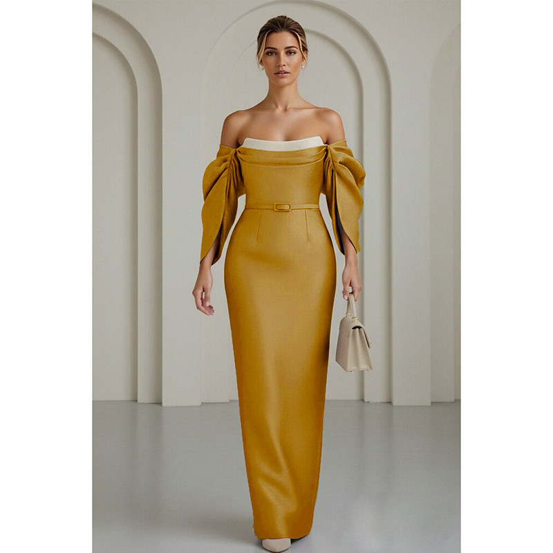 Sheath Column Floor Length Formal Dresses Evening Gown Prom Dresses Evening Gown Ball Gown Formal Dress Elegant Celebrity Style Short Sleeve Off Shoulder Wedding Formal with Ruched Slit Strappy