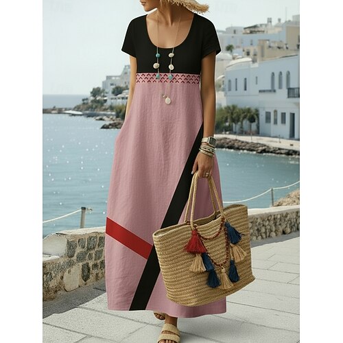 Per donna Abito maxi Vestito Casual Vintage Quotidiano All'aperto Spiaggia Vestibilità comoda Geometrico Manica Corta Girocollo Giallo Rosa Arancione Cachi Estate Primavera