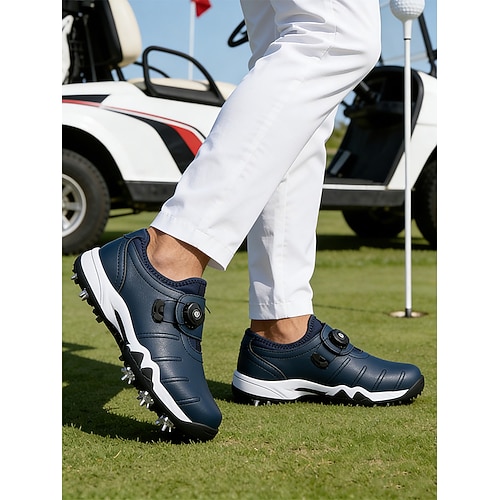 scarpe da golf da uomo, in similpelle bianca con chiusura regolabile con boa, vestibilità comoda, suola antiscivolo, perfette per il golf, gli sport all'aria aperta e uno stile di vita attivo