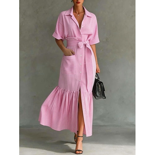 Per donna Abito Midi Vestito Estivo Abito a trapezio Abito Estivo Abito aderente Vacanza Festa Compleanno Quotidiano Ufficio Feste Vestibilità comoda Grafico Manica Corta Bavero Blu Nero Rosa Cammello