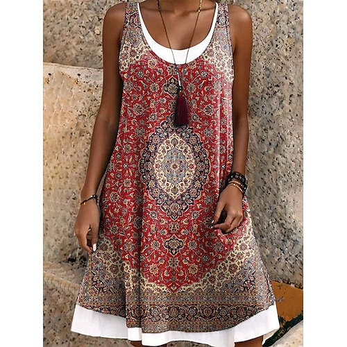 Per donna Abito al ginocchio Vestito Estivo Vestito T-Shirt Abito a trapezio Vacanza Casual Boho Vestibilità comoda Grafico Geometrico Senza Maniche Collo a U Giallo Vino Viola Estate Primavera