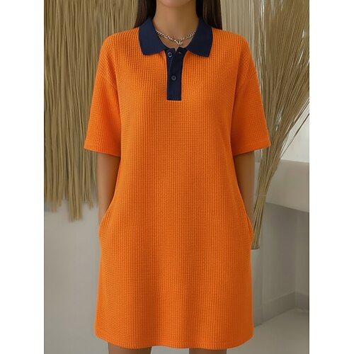 Per donna Abito al ginocchio Abito a Tubino Abito scozzese Classico Quotidiano Weekend Vestibilità comoda Blocco di colori Manica Corta Colletto a Camicia Bianco Verde chiaro Arancione Azzurro Estate